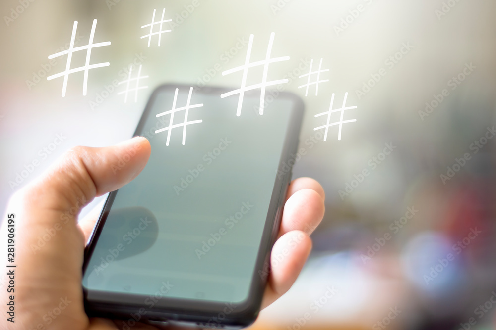 Man Hand Is Playing Social Media Idea A Word Or Phrase Preceded By A Hash Or